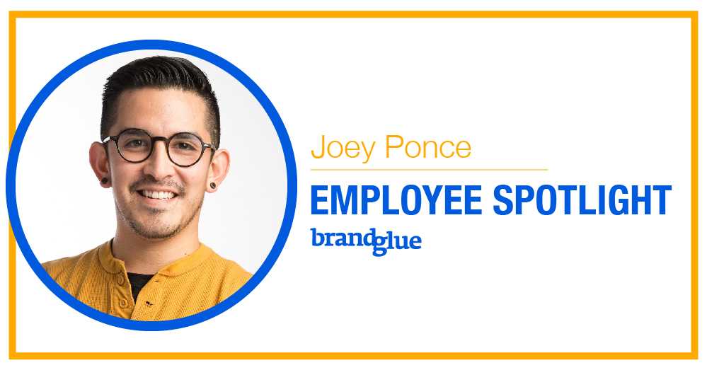 As promised, it’s time to highlight the next BrandGlue team member in our employee spotlight blog series. This week, I’m honored to showcase our awesome Creative Director, Joey Ponce. Joey is the mastermind and head honcho behind all of the graphics, video and animations that BrandGlue produces for our clients. He’s an amazing brainstorming partner with a keen eye for what will resonate with target audiences. His innovative, artistic vision has proved successful time and time again.